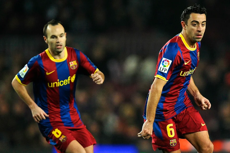 Xavi dan Iniesta dikenal sebagai simbol dominasi berbasis penguasaan bola. Keduanya tidak mengandalkan kekuatan fisik, melainkan kecerdasan posisi, ketepatan umpan, dan pemahaman ruang.